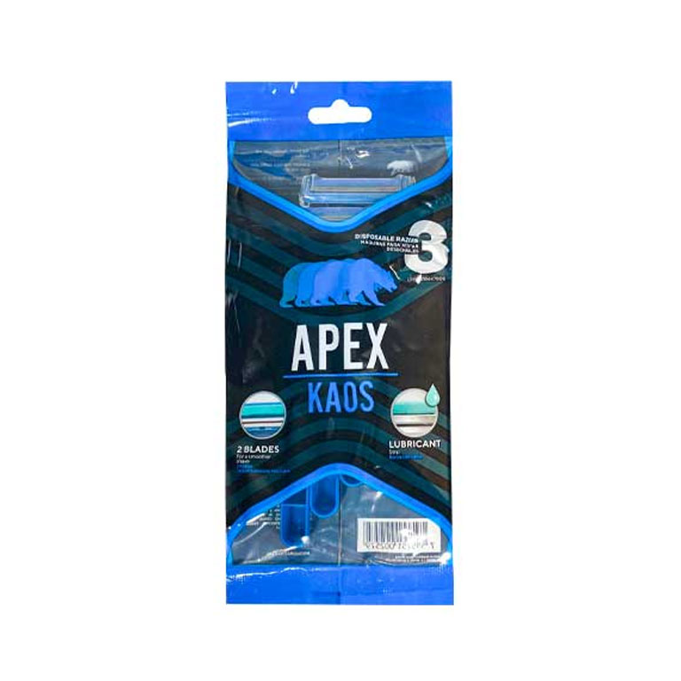 Afeitadora Kaos 2 Hojilla 3 Unid de la marca Apex. Presentación: 8×24. Producto de alta calidad disponible en El Loro Distribuidora.