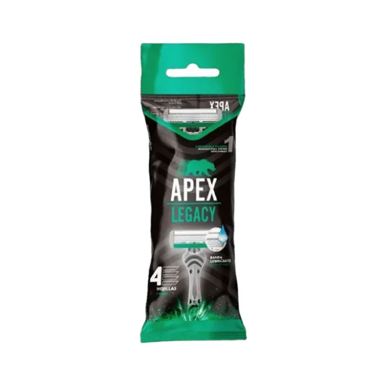 Afeitadora Legacy 4 Hojilla 1 Unid de la marca Apex. Presentación: 8×24. Producto de alta calidad disponible en El Loro Distribuidora.