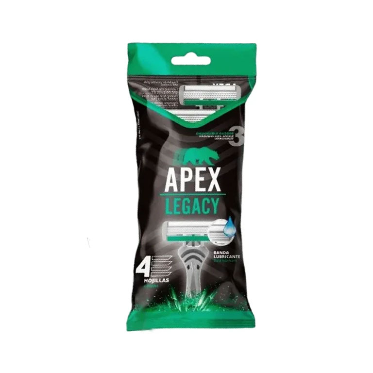 Afeitadora Legacy 4 Hojilla 3 Unid de la marca Apex. Presentación: 8×24. Producto de alta calidad disponible en El Loro Distribuidora.